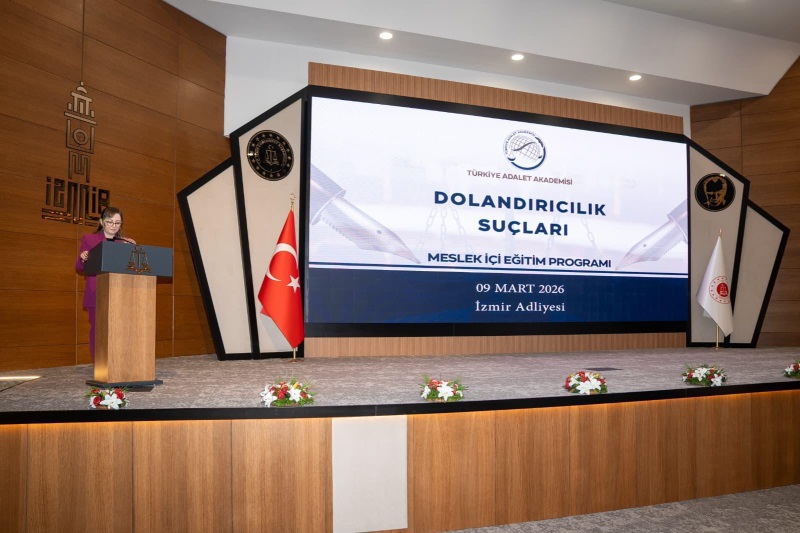 Türkiye Adalet Akademisi tarafından düzenlenen meslek içi eğitim faaliyetleri kapsamında, 9 Mart 2026 tarihinde İzmir Adliyesi Şehit Fethi Sekin Konferans Salonu’nda ‘Dolandırıcılık Suçları’ konulu meslek içi eğitim programı gerçekleştirildi.